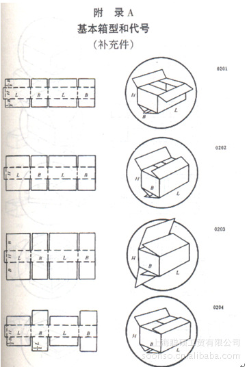 基礎(chǔ)型即基本箱型,在標準中有圖例可查,一般用四位數(shù)字表示,前兩位表示箱型種類,後兩位表示同一箱型種類中不同的紙箱式樣。例如:02表示開槽型紙箱;03表示套合型紙箱等。而組合型是基礎(chǔ)型的組合,即由兩種以上的基本箱型所組成,用多組四位數(shù)字或代號來表示。例如,一個紙箱的上搖蓋可以用0204型,下?lián)u蓋用0215型。